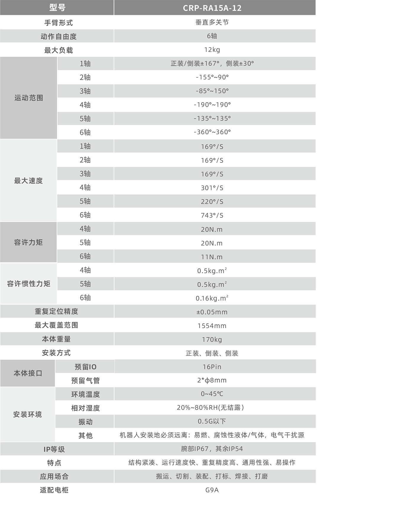 機器人整體結構高度緊湊、輕量化,更加輕巧適用,尤其腕部更加小巧,滿足更多的場景。